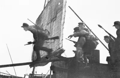 后繼部隊(duì)大批運(yùn)送彈藥的汽車(chē)過(guò)江